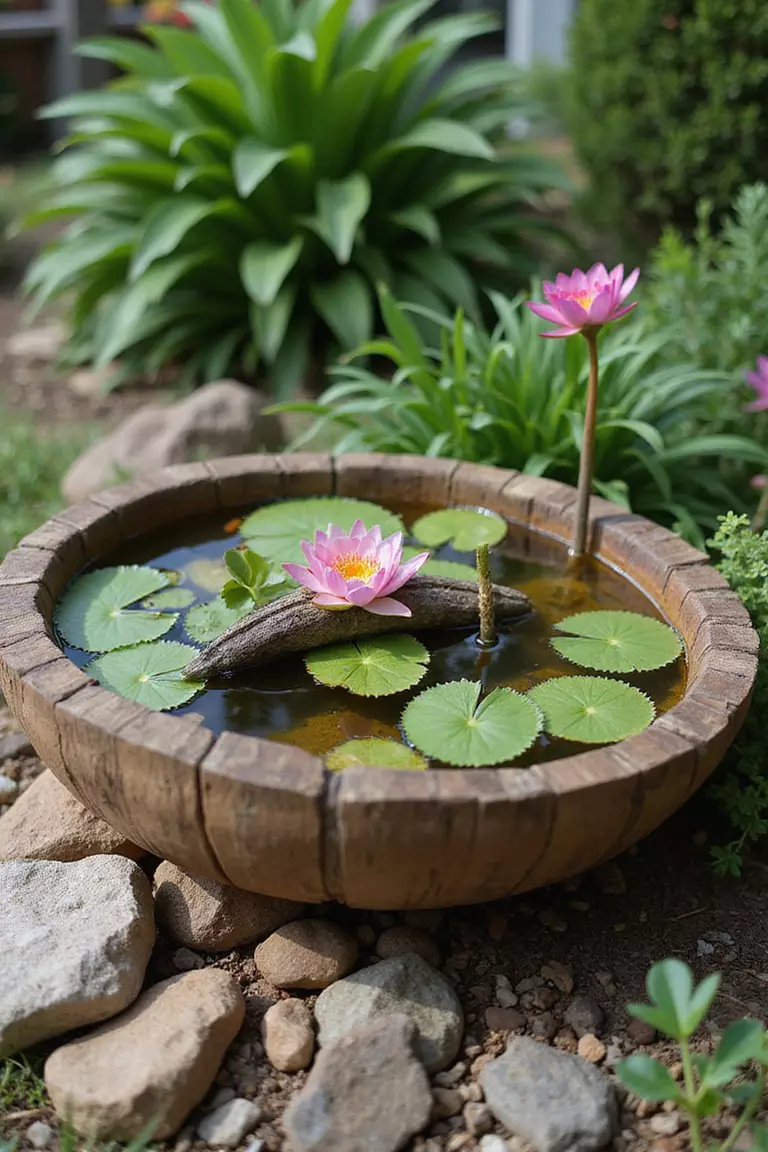 You can create a mini pond using almost any watertight container.