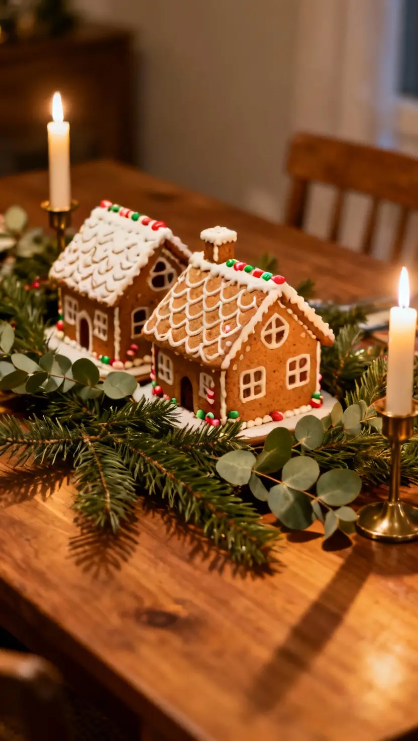 Gingerbread Houses With Greenery and Candles