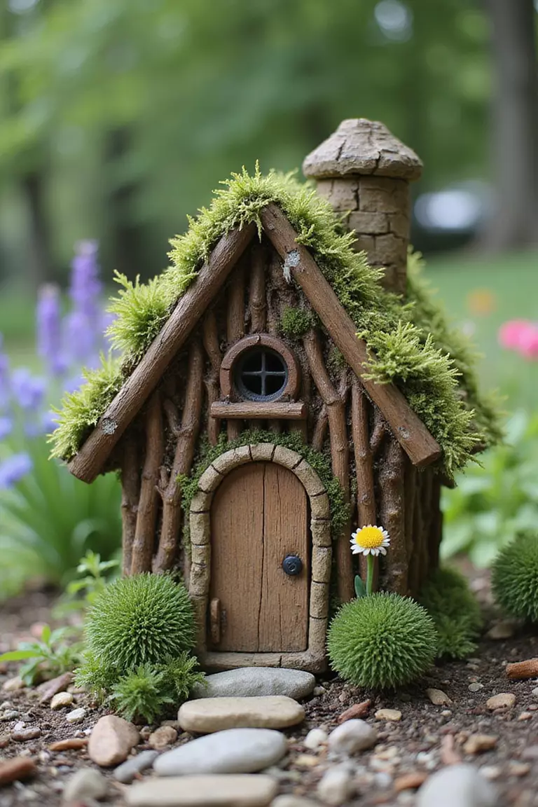 You can buy a small fairy house or make one yourself using natural items like twigs, bark, or stones.