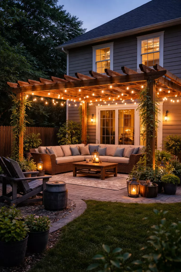 Draping weatherproof string lights across your pergola or patio creates an instant party atmosphere without any effort.