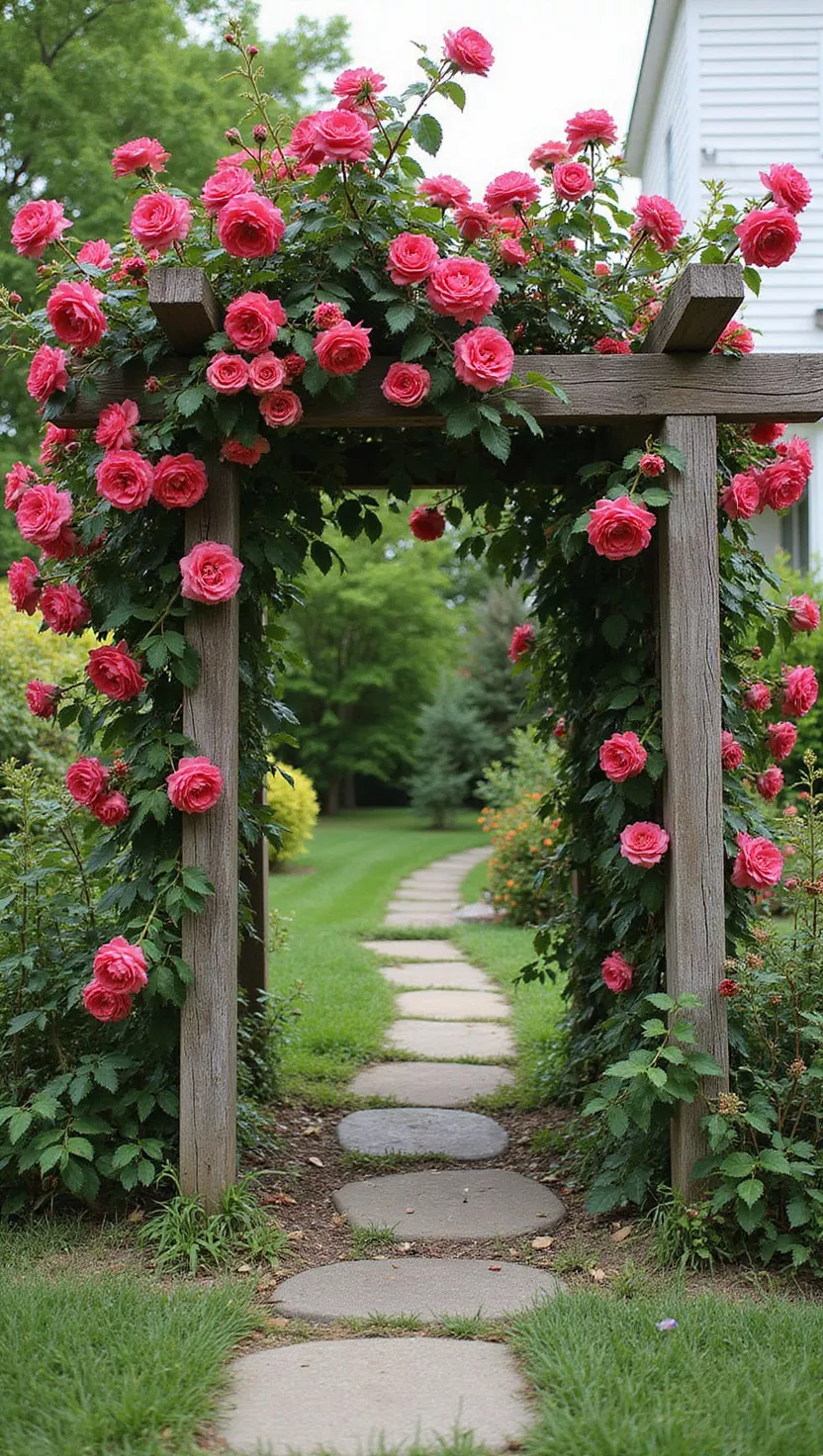 You can create a romantic entrance with a classic wooden arch covered in climbing roses.