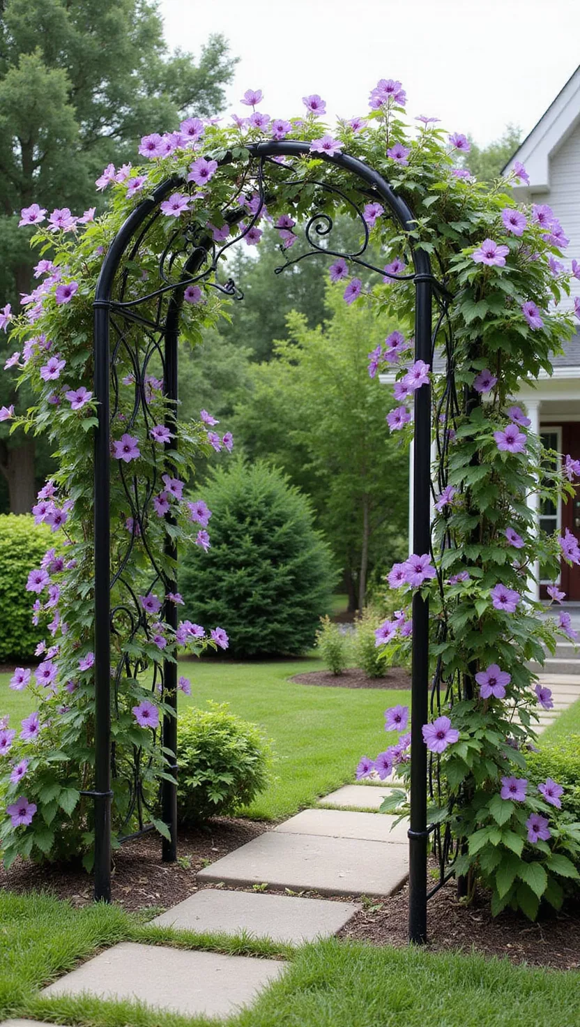Metal Arbor with Clematis Vines