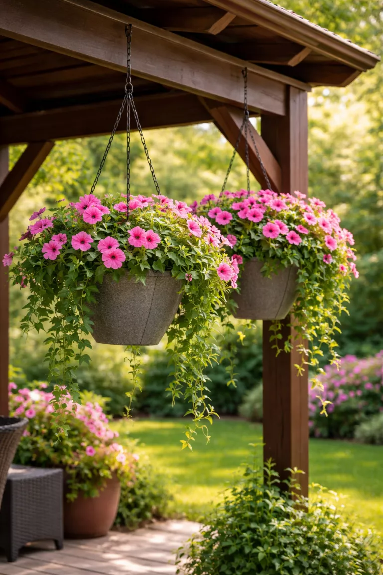 You can select trailing ivy or petunias to create a waterfall of color that keeps the air fresh.
