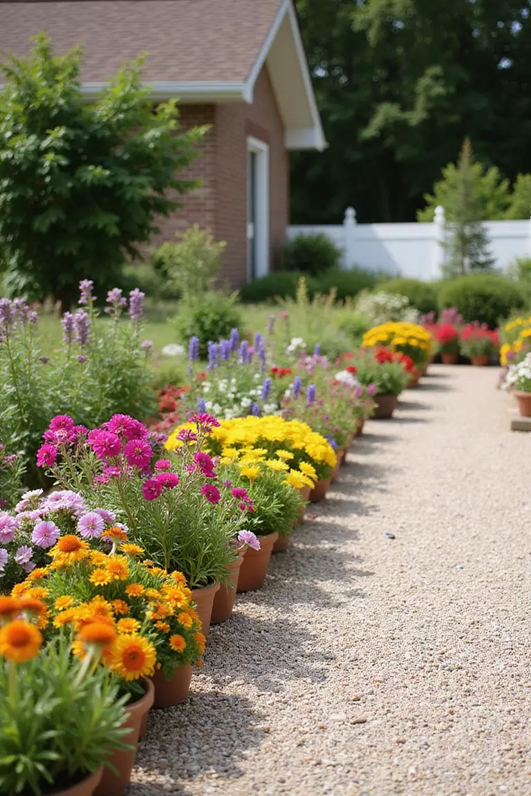 Create a cottage feel by mixing different sizes of gravel with wildflowers and rustic elements.