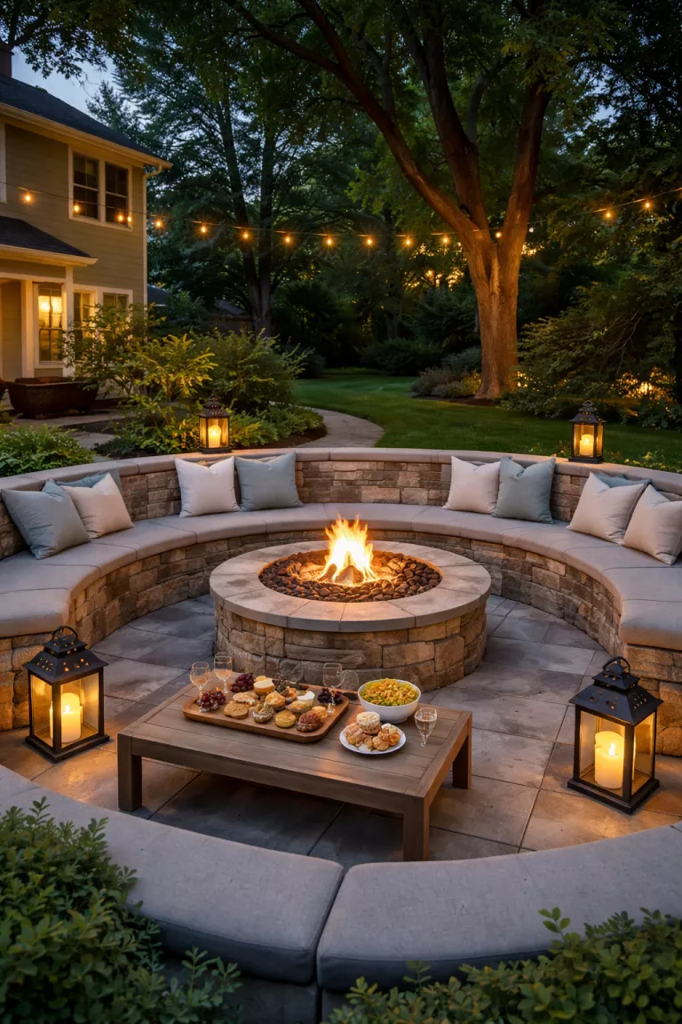 Surround the pit with built-in benches or chairs topped with heat-resistant cushions to ensure everyone stays comfortable as the temperature drops.
