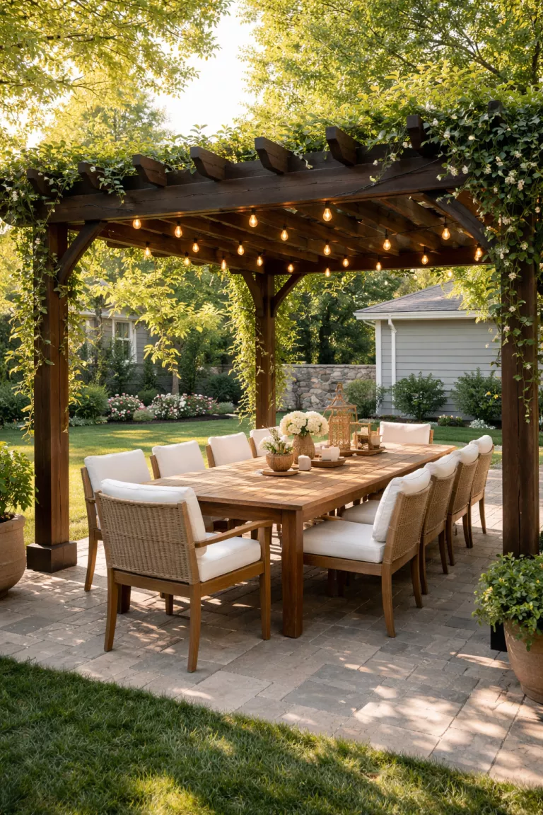 These structures protect your furniture from light rain and harmful rays, extending the life of your dining set.
