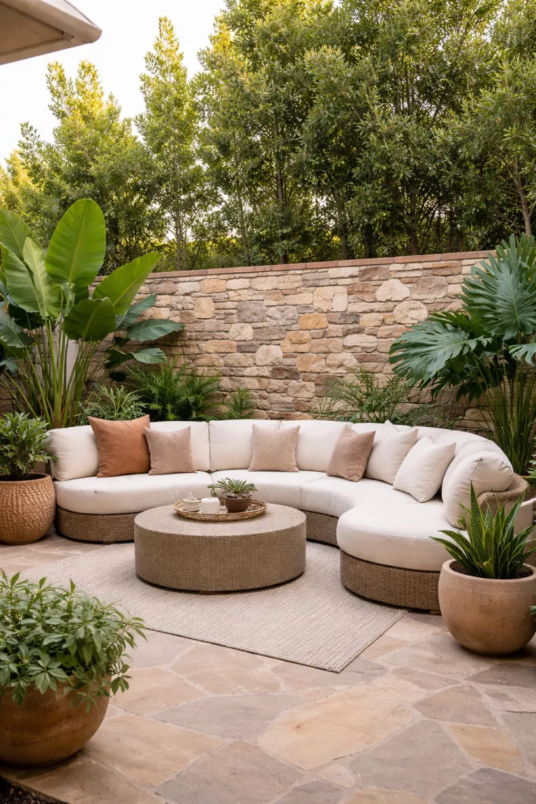 These earthy tones harmonize with the surrounding plants and soil, making your patio feel like a natural extension of the landscape.