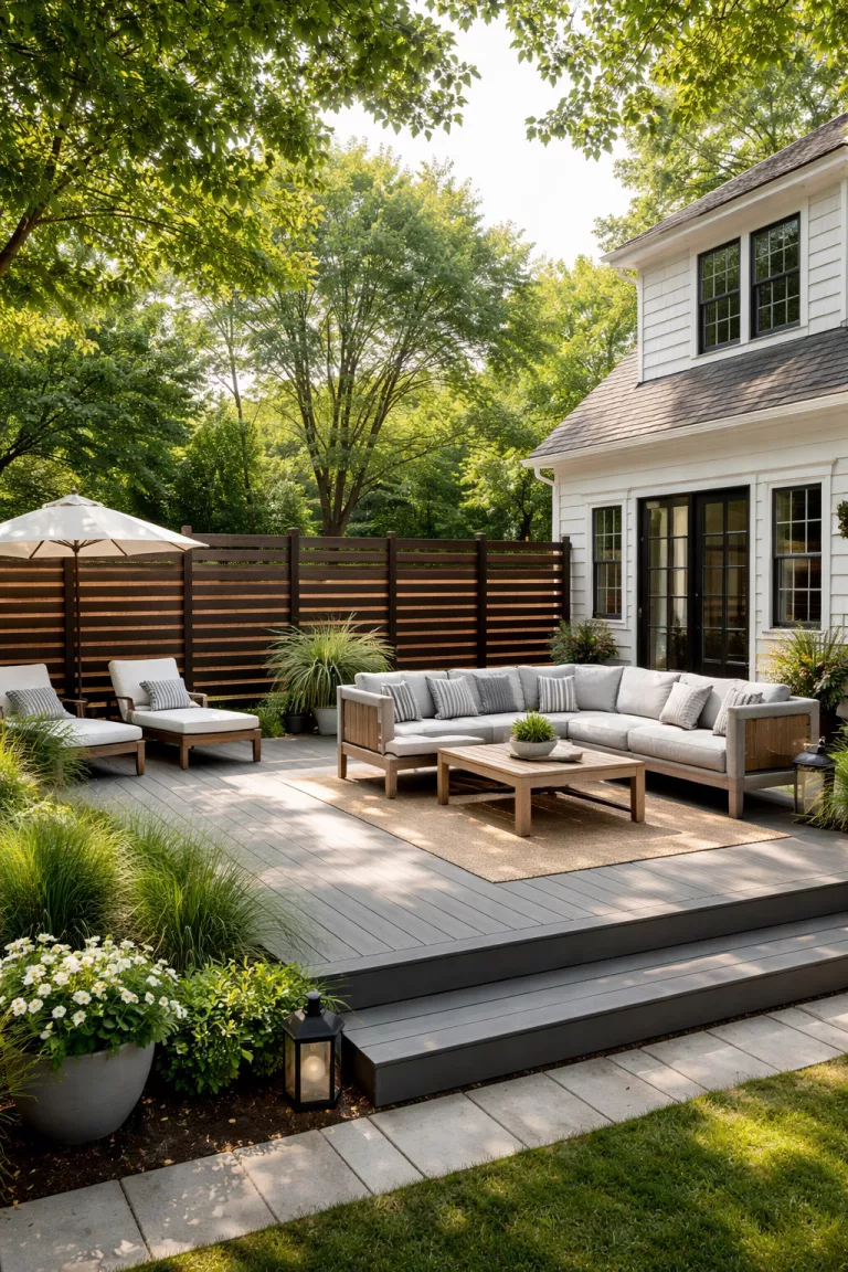 This design usually costs over fifty dollars per linear foot, but it transforms a basic yard into a high end outdoor living room.
